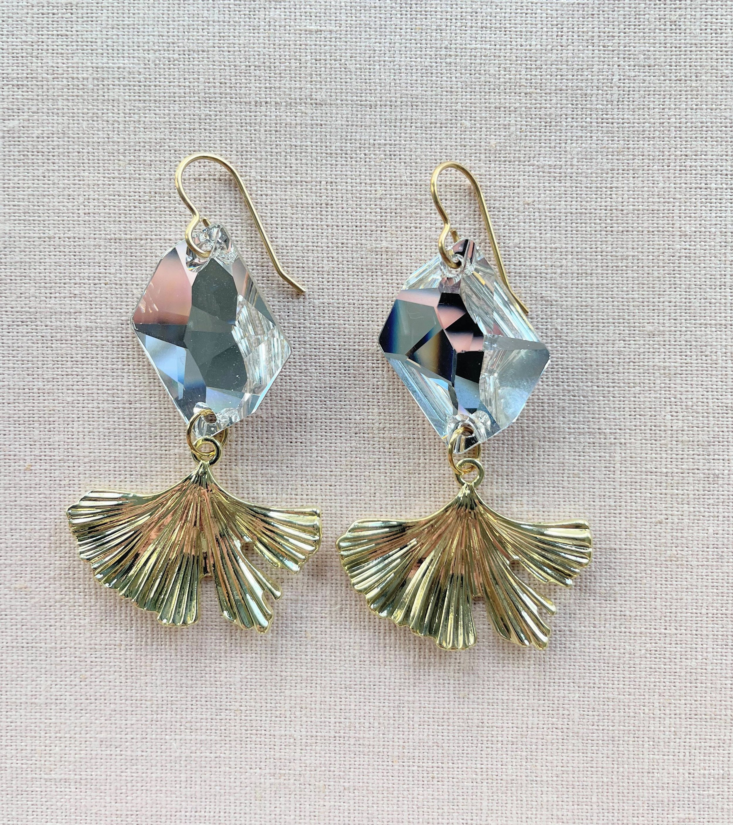 Categories: All Hair Pins Headbands Bows Tiaras Necklaces Fascinators Hair Clips Earrings hair clips vintage headbands hair pins necklaces bridal bows All / Elegant Gold Ginkgo Leaf Drop Earrings with Swarovski Crystals $20.00 Sold out
