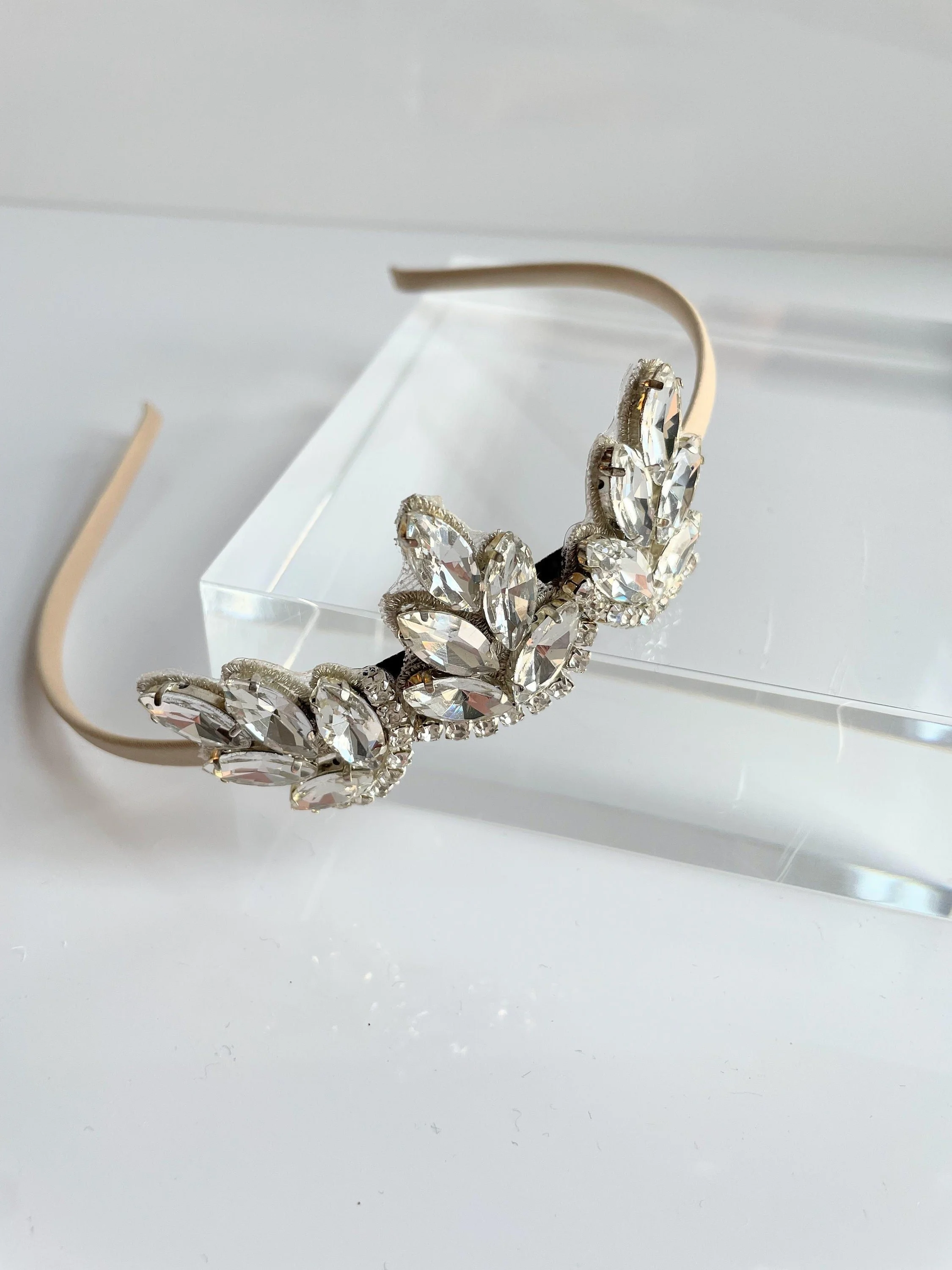 Lisette Headband: A skinny nude headband with crystal embellishments is understated and chic. With the perfect amount of sparkle, you can wear it with a wedding gown or dress it down with jeans. The skinny satin headband is incredibly lightweight and comfortable.